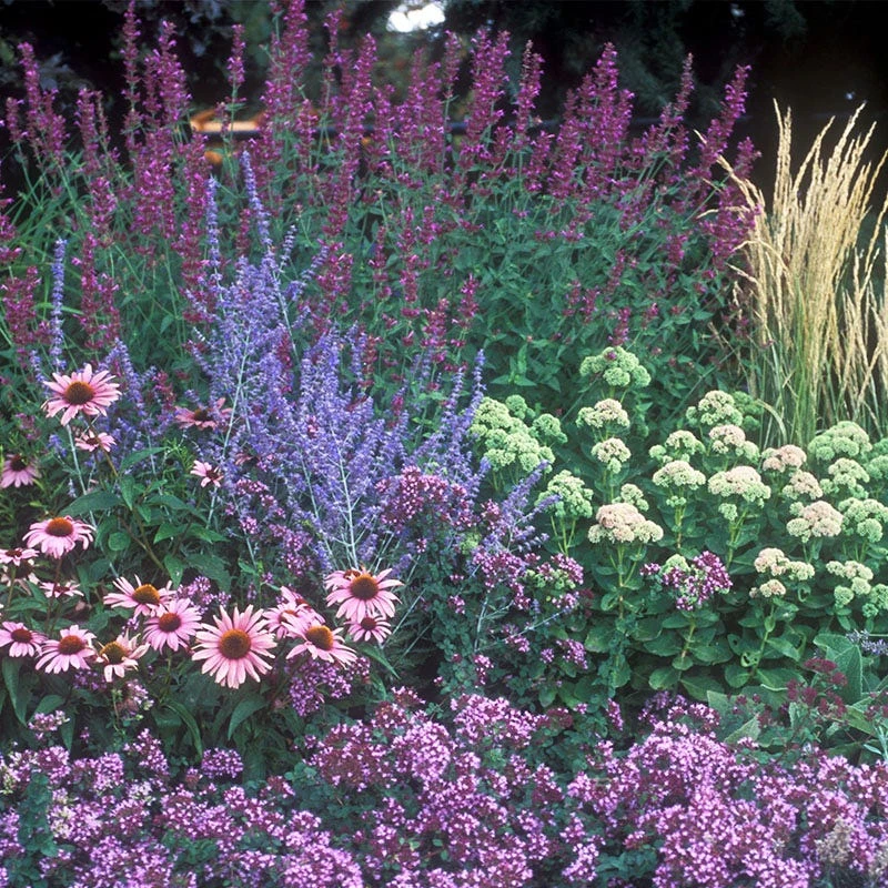 Exclusive to High Country Gardens, our August Afternoons Pre-Planned Garden was designed by David Salman, founder of High Country Gardens. With a pleasing combination of grasses, flower forms, and colors, this hummingbird-and-butterfly-friendly garden comes into bloom in August and continues through September.