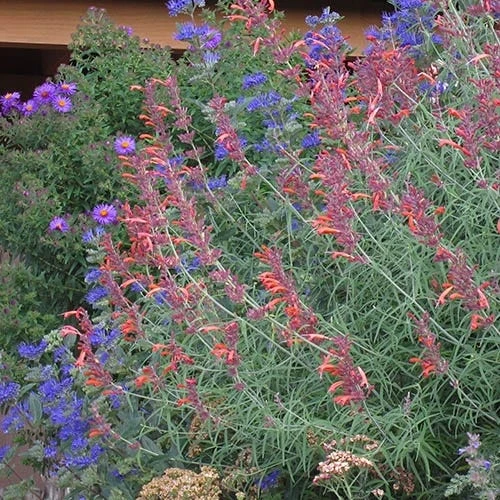 24-48″ tall x 48″ wide (cutting propagated). An outstanding new Blue Mist cultivar, ‘First Choice’ is different from other varieties because of its tight branching habit and deep, deep blue late-summer flower spikes. Caryopteris is also a superb shrub for providing nectar for butterflies and other pollinators. Plant in non-clay soils and irrigate deeply but infrequently. Trim back by 1/3 to 1/2 in the spring every third year. Deadhead annually in the fall or spring. I like it paired with white-flowered Fernbush.