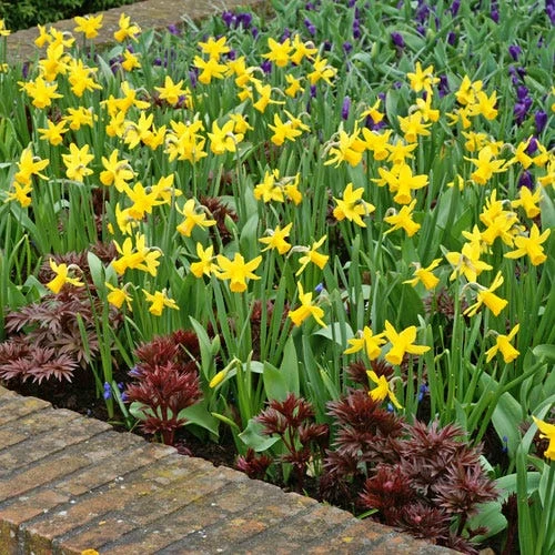 Narcissus ‘Tete-a-Tete’ (Daffodil) is a perky little heirloom daffodil that has fragrant buttercup-yellow petals and yellow-orange cups. With 2 to 3 flowers per stem, ‘Tete-a-Tete’ is a prolific bloomer that forms large colonies.