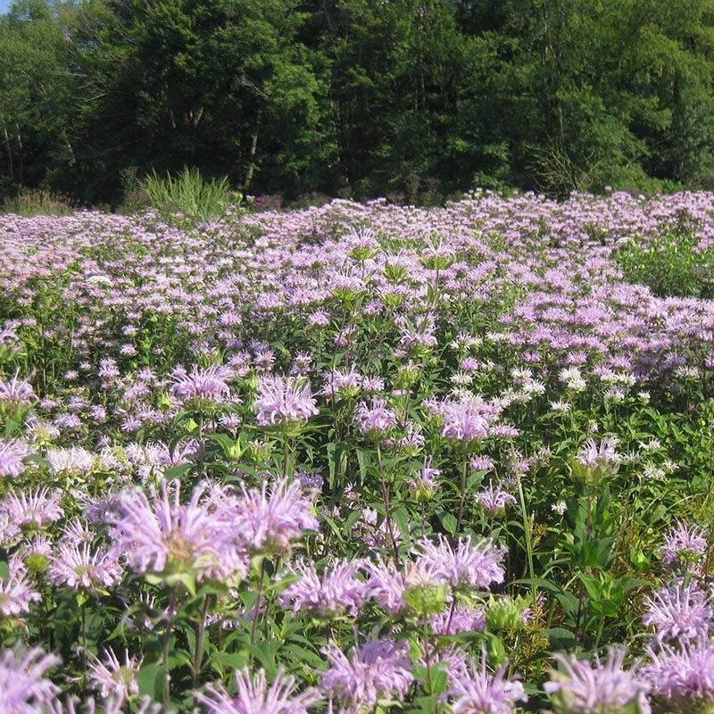 30-36″ tall x 18-24″ wide (seed propagated). This showy wildflower species blooms in summer with a spectacular display of lavender-pink, hummingbird attracting flower clusters held on top of sturdy, upright stems. Its attractive, glossy, aromatic foliage looks good all season and is not affected by powdery mildew. Our selection is grown from seed collected in the scenic but climatically challenged Wichita Mountains of southwestern OK. Enduring bone chilling winters, brutally hot, humid summers and periodic drought, Wichita Mts. Wild Bergamont is a fine choice for low maintenance plantings all across the country. It grows easily in full sun plant in most soil types including clay.